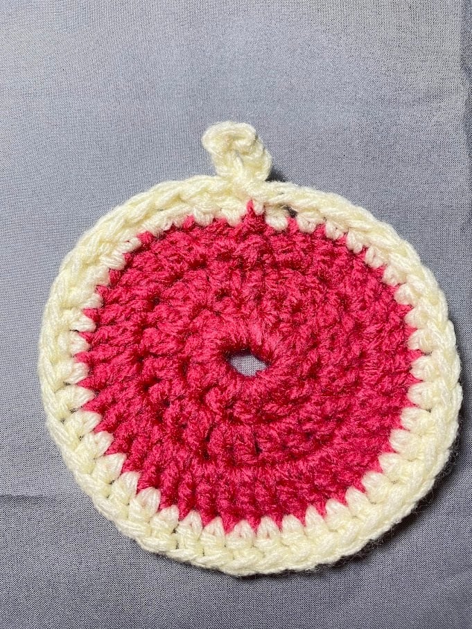 アクリルたわし 色:アゼリアピンク×アイボリー