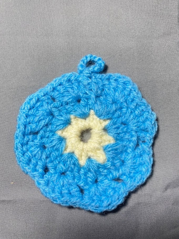 アクリルたわし 色:セルリアンブルー×アイボリー